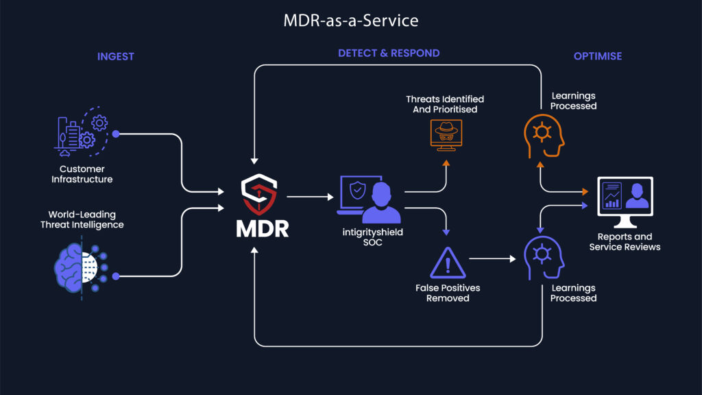 IntigrityShield’s MDR-as-a-Service offers organizations an outsourced cybersecurity solution for efficient detection and response to cyber threats, minimizing potential impacts. This service streamlines incident response within the network, eliminating the need for additional staff.